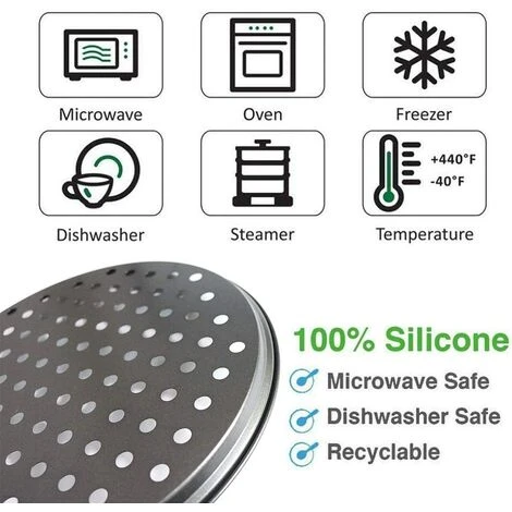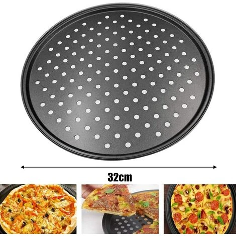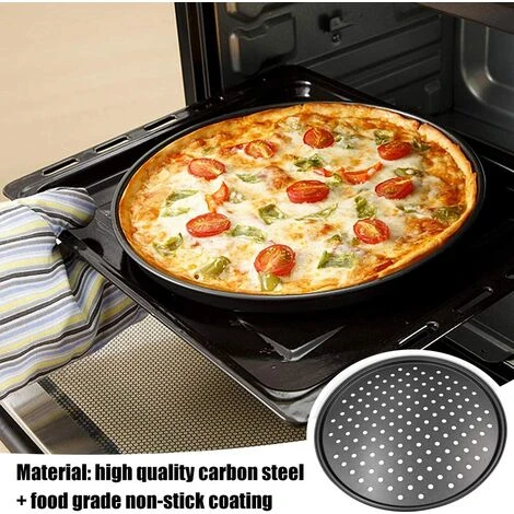 【CONCEPTION】:Le fond du bol à pizza est perforé de la même taille,de sorte que la perforation peut garantir que la pizza est chauffée uniformément et rend la pizza croustillante.