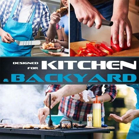 Vous pouvez rapidement déplier le BBQ spatule ustensiles Set même si vous n’avez jamais utilisé le spatule ustensiles Set– Indispensable pour les amateurs de barbecue qui aiment célébrer dans le jardin ou en plein air, pour les pères qui aiment cuisiner en famille. Lorsque vous cuisinez vos aliments avec Ensemble d’outils pour Plaque chauffante de cuisson, vous êtes un maître professionnel du barbecue en peu de temps.