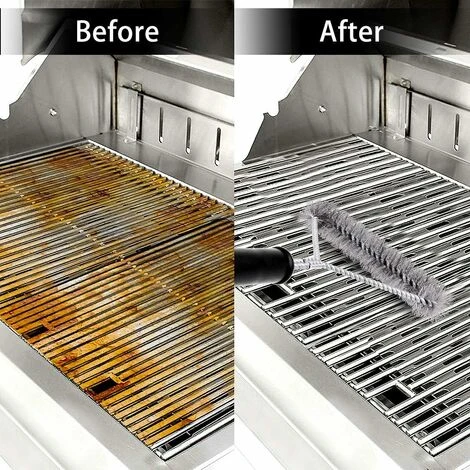 【Nettoyage Plus Rapide】- Poils épais en acier inoxydable brosse à grillades à poils à 3 côtés permet de nettoyer efficacement les espaces difficiles à atteindre. Il aide le gril à éliminer facilement et complètement les résidus de barbecue.