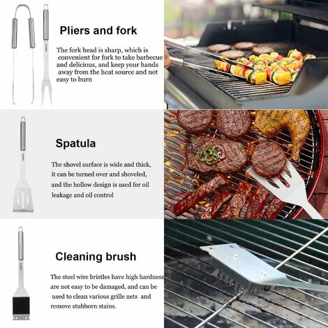 L’ensemble de barbecue est fabriqué en acier inoxydable de haute qualité et ne se déforme pas, ne se plie pas et ne rouille pas. Contrairement aux matériaux en bois, il résiste à la chaleur et aux fissures. La conception humanisée de chaque pièce rend le produit plus efficace, facile, pratique et sûr à utiliser. De plus, il est robuste et pratique et facile à nettoyer.