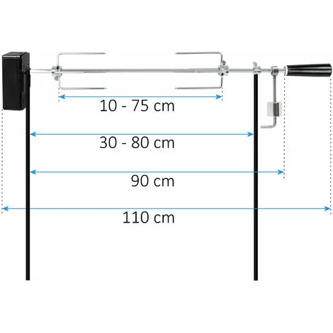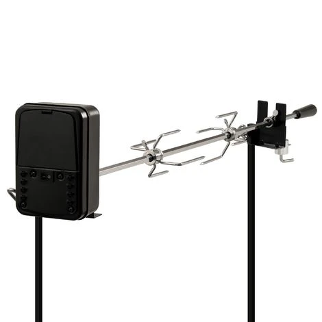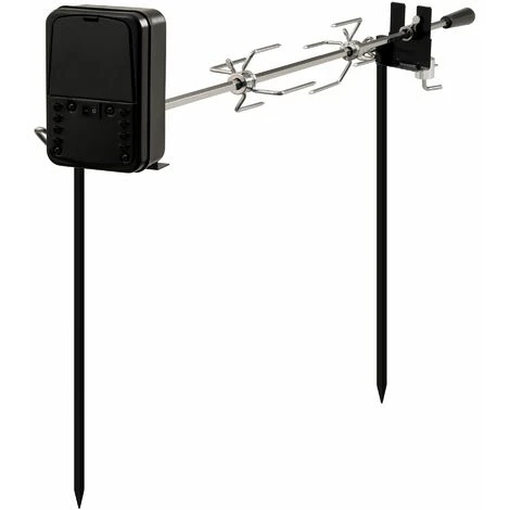 La brochette de barbecue hexagonale de 90 cm de long est solidement fabriquée avec un diamètre intérieur de 10 mm (taille de la clé). Le moteur inclus dans un boîtier métallique est alimenté par 2x piles monocellulaires D (non incluses!) et assure un brunissement uniforme de vos aliments pour le barbecue.