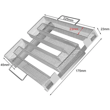 Description du produit Matériel : Acier inoxydable Taille : Section A en forme de M, 22,5*22,5*4,5 cm ; Section B en forme de M, 22,5*22*4,5 cm; Section C en forme de M, 22,5*17,5*4,5 cm; Style : A en forme de M, B en forme de M, C en forme de M Couleur : argent Quantité : 1 pièce Contenu de l’emballage : 1 * panier fumé à froid, 2 * crochets, 1 * brosse 1.【Générateur de fumée froide pour grill】:Fumeur que vous utilisiez un gril à charbon, à gaz ou à bouilloire – le générateur de fumée promet d’excellents résultats et des saveurs fantastiques. Sa dimension est de section A en forme de M, 22,5*22,5*4,5 cm; Section B en forme de M, 22,5*22*4,5 cm; Section C en forme de M, 22,5 x 17,5 x 4,5 cm. Comprend : 1 générateur de fumée froide, 1 brosse, 2 crochets. 2.【Conception spéciale】:Lorsque vous utilisez de la fumée froide, les aliments (principalement de la viande ou du poisson) créent un arôme spécial lorsqu’ils sont fumés et la durée de conservation est considérablement prolongée. Si un fumoir séparé n’est pas nécessaire, le générateur de fumée froide peut être utilisé dans n’importe quel gril fermé. 3. 【Haute qualité】 Acier inoxydable de haute qualité, antirouille, particulièrement durable, ce qui en fait non seulement un outil très pratique et durable, mais aussi élégant. 4.【Deux extrémités ouvertes】:Avec l’aide de la structure en treillis métallique, la spirale de fumée froide garantit que les copeaux de fumée brûlent de manière uniforme et permanente.Si le générateur de fumée froide est allumé des deux côtés, plus de fumée sera produite et le le temps de combustion sera raccourci, ou il sera allumé d’un côté du générateur et produira une fumée modérée, mais le temps de combustion sera plus long 2.Utilisez une allumette, un briquet à gaz ou un chalumeau pour enflammer les copeaux. 3. Lavez et séchez le panier à fumée après chaque utilisation. 4. Utilisez toujours de la poussière de bois sèche, car la poussière mouillée ou humide ne brûlera pas correctement dans le fumoir. 5. Ne laissez pas le générateur de fumage à froid sans surveillance.