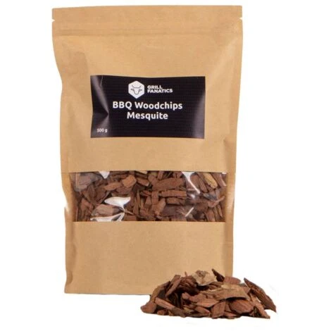 Sachet de 500 grammes de copeaux d’essence de bois de Mesquite, pour fumage à chaud ou à froid.