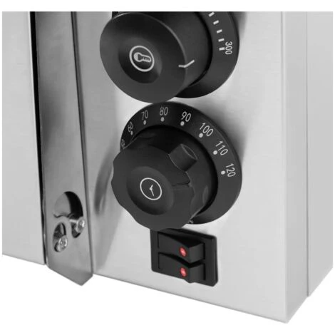 Le four à pizza de Royal Catering est une aide précieuse pour préparer toutes sortes de pizzas. Cet appareil de cuisson pratique est parfaitement adapté aux pizzérias italiennes, mais convient également aux cafés, bistros et snackbars. Un contrôle précis de la température avec réglage séparé pour les résistances chauffantes supérieure et inférieure, une pierre à pizza professionnelle en argile réfractaire et une minuterie fiable : ce four à pizza dispose de tous les outils nécessaires pour obtenir une pizza parfaite. Le four dispose d’une puissance de 2 000 W qui lui permet d’atteindre rapidement la température voulue sur une plage de 50 à 350 °C. Laissez-vous convaincre par une qualité élevée et un service compétent : optez dès aujourd’hui pour un four à pizza Royal Catering !