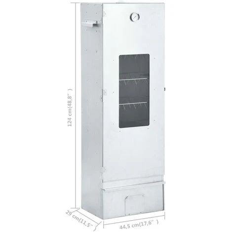 Ce fumoir est équipé d’un thermomètre pour vous tenir informé de la température de la chambre. Par la fenêtre, vous pouvez garder un œil sur les aliments à l’intérieur. Le four à fumée de 124 cm de haut offre beaucoup d’espace pour fumer la viande.