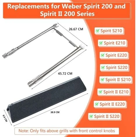 ✔ Abordable: Si Votre Gril Appartient à la Série Weber Spirit 200: L’achat de ce kit de pièces de rechange (barres d’arôme Weber 7635 + tubes de brûleur Weber 69785) sera meilleur marché et plus économique que de l’acheter séparément.