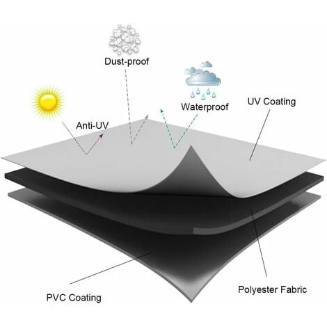 Matériau résistant aux UV : fabriqué en tissu Oxford 210D haute densité et revêtement UV, il est non seulement imperméable à l’eau, à la poussière, aux UV, mais également respectueux de l’environnement, résistant aux déchirures, plus durable et plus résistant que le polyester.