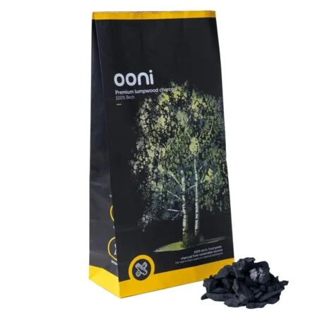 4,5 kg de charbon de bois Ooni premium fabriqué à partir de bois de bouleau à 100 %. Sans produits chimiques, arômes ou additifs. Il infuse les plats avec une saveur naturelle. SAC DE 4,5KG