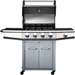 Barbecue Gaz Avec LED Bingo 5 – 5 Brûleurs Dont 1 Latéral – 15.2kW + Housse Protection – Argenté