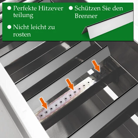 [compatibilité] remplace Weber Spirit I E210 (2007 – 2008) et Spirit II E / s 210, y compris Spirit E210, Spirit S210 [facile à installer] couvercle du brûleur: 55 x 4,4 x 3,8 cm, y compris 5 poutres. [fonction] empêche les gouttelettes alimentaires de brûler et de se transformer en vapeurs savoureuses qui entourent la Chambre de combustion. Les gouttelettes non évaporées se déplacent le long de la pente et sont rejetées par le brûleur pour protégerle brûleur. En même temps, il élimine la graisse de la viande et rend la viande délicieuse.