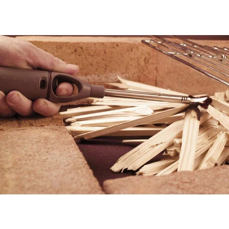 Allume-feu avec réglage de la flamme et loquet de sécurité.