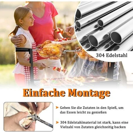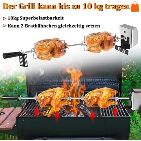 Sur le barbecue, vous pouvez non seulement préparer des saucisses, des légumes et des steaks pour la famille et les amis, mais aussi préparer de la viande grillée juteuse, du poulet, du kebab ou vos propres créations sur le barbecue. Le moteur électrique