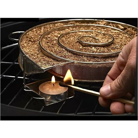 Facile à utiliser, il suffit de disposer la sciure de fumaison dans la spirale et de l’allumer avec un briquet chalumeau, une bougie chauffe plat ou un allume sciure (non fournis). Notes: assurez vous que la sciure est de niveau et que le haut de la spirale est visible.
